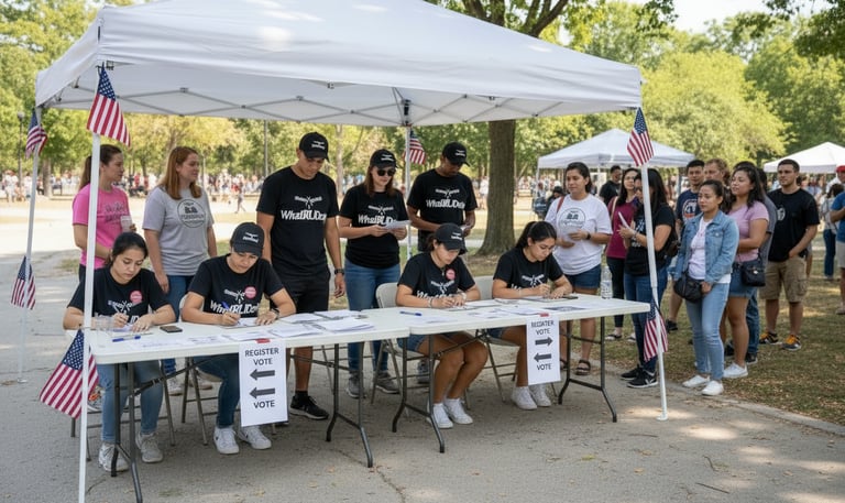 The WhatRUDoing? organization is committed to strengthening democracy by actively registering voters in the community. By providing accessible voter registration and encouraging civic participation, WhatRUDoing? helps ensure that every eligible voice is heard and that communities have the power to shape their future through voting.